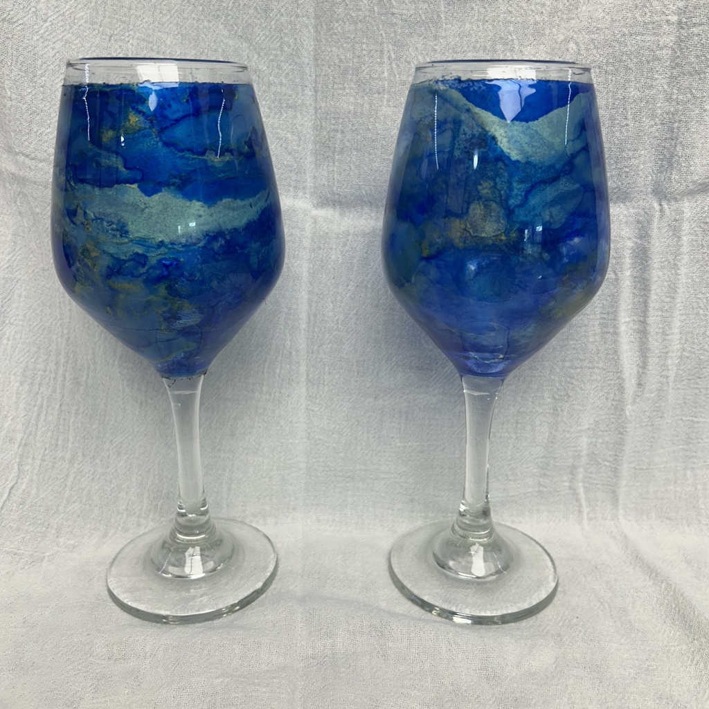 🍷 One-of-a-Kind Painted Wine Glasses – Crafted with resin & mica powder